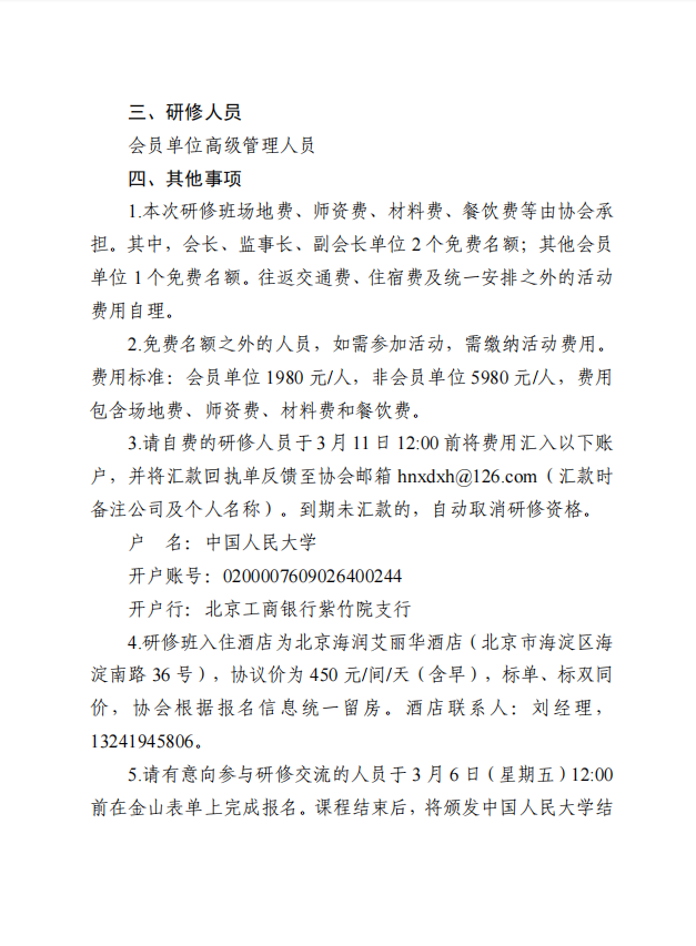 关于组织会员单位赴中国人民大学研修交流的通知